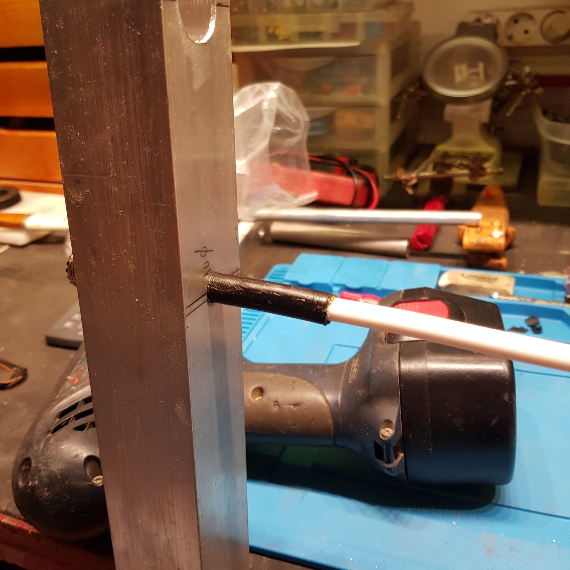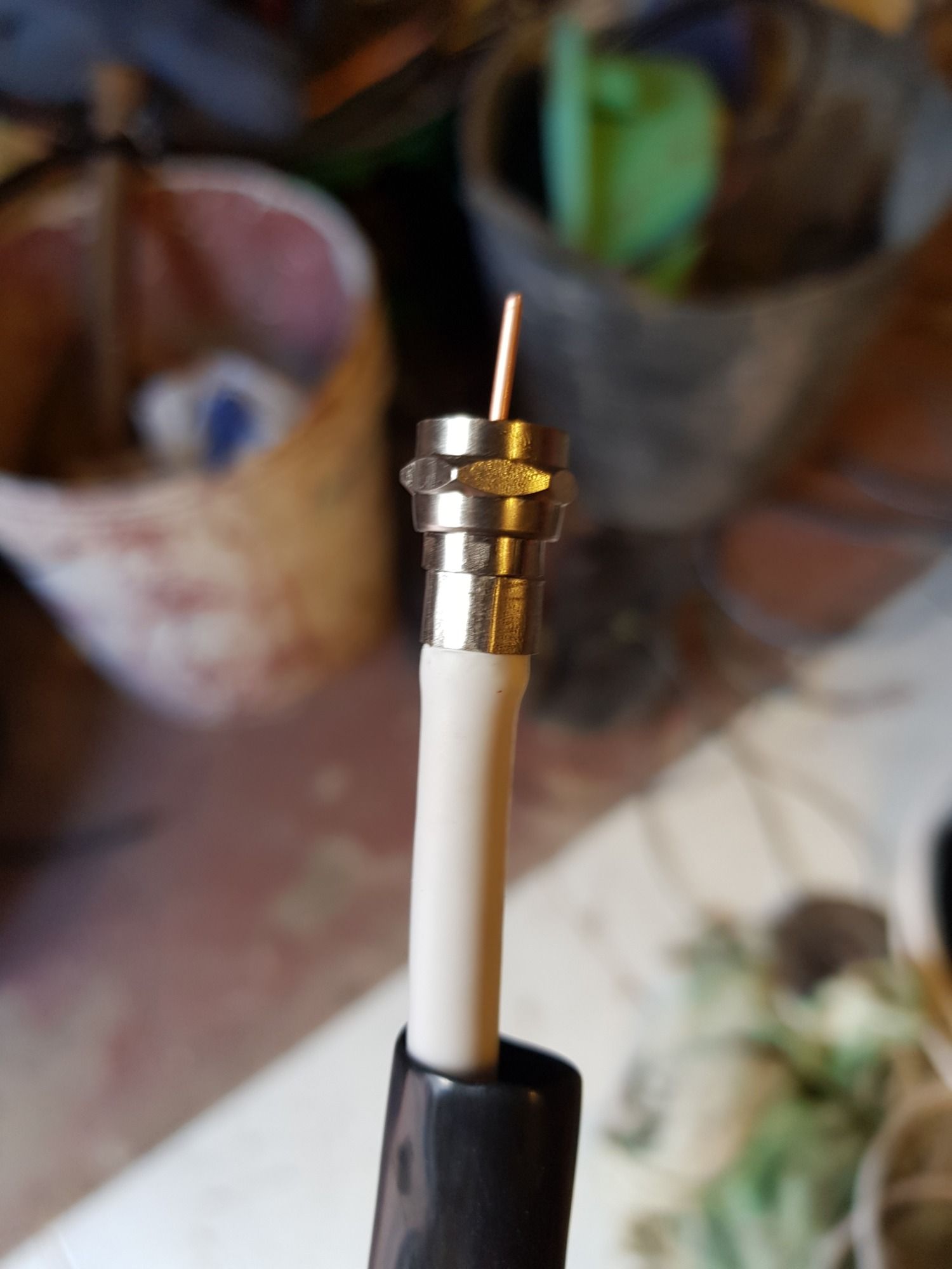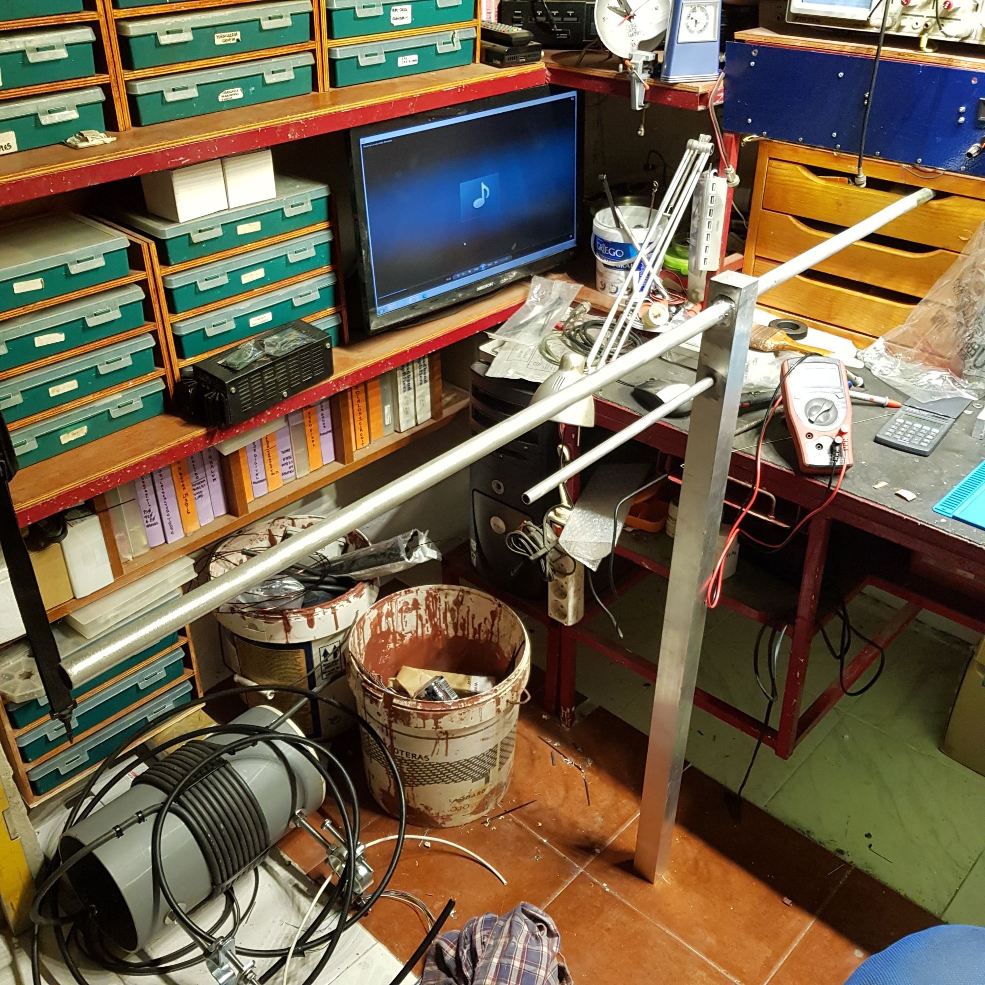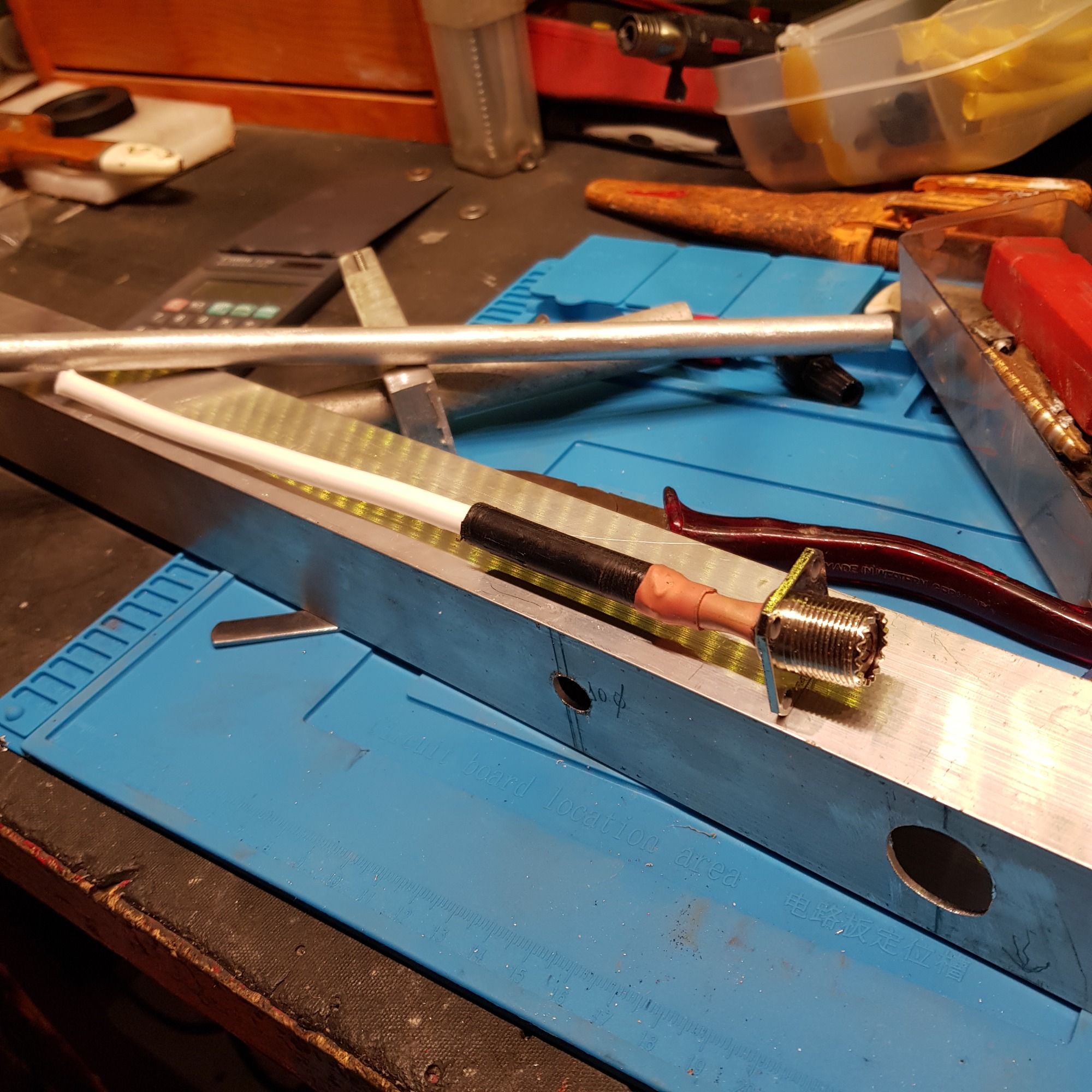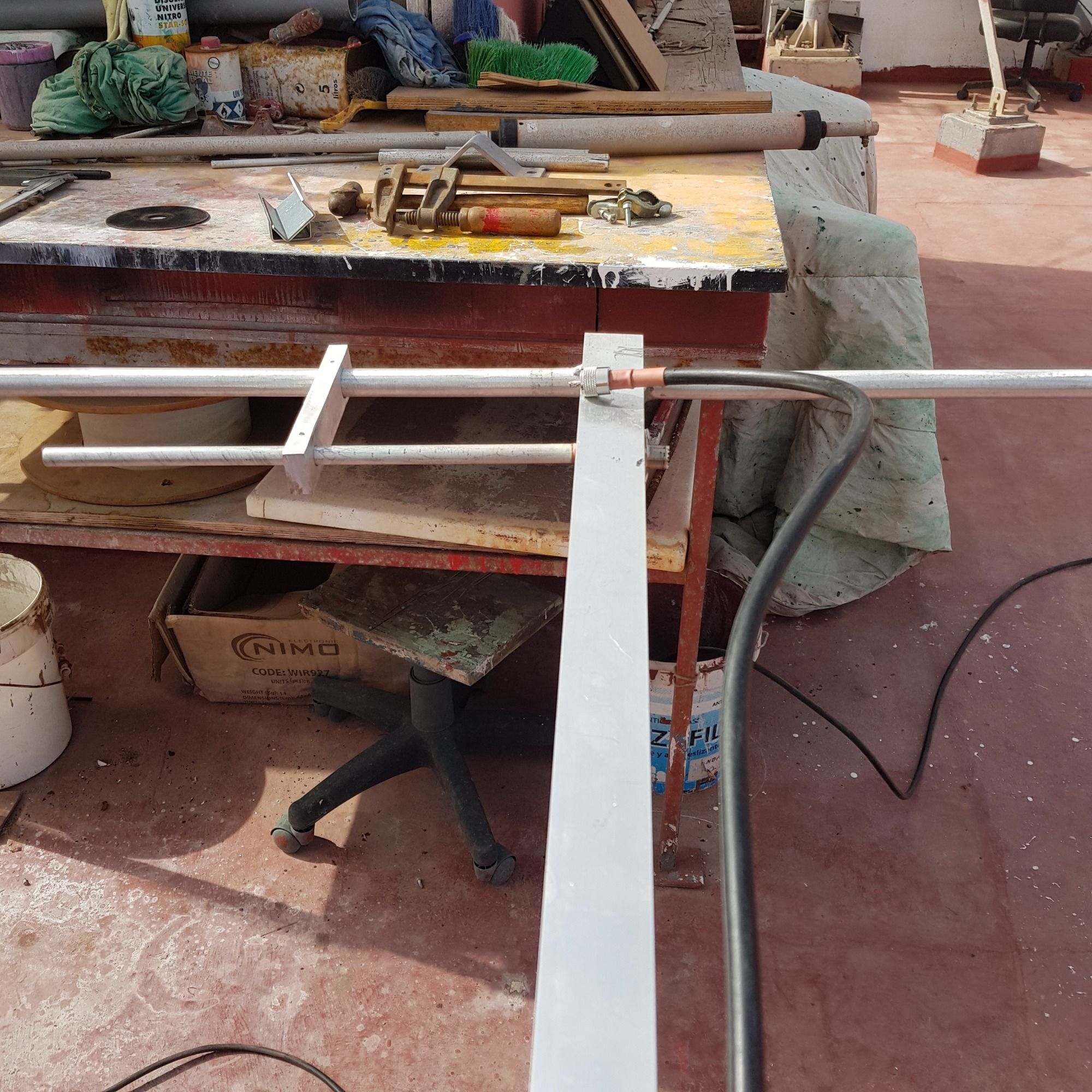 Antenas autoconstruidas en aluminio mecanizado con roscas, orificios y soldadura.